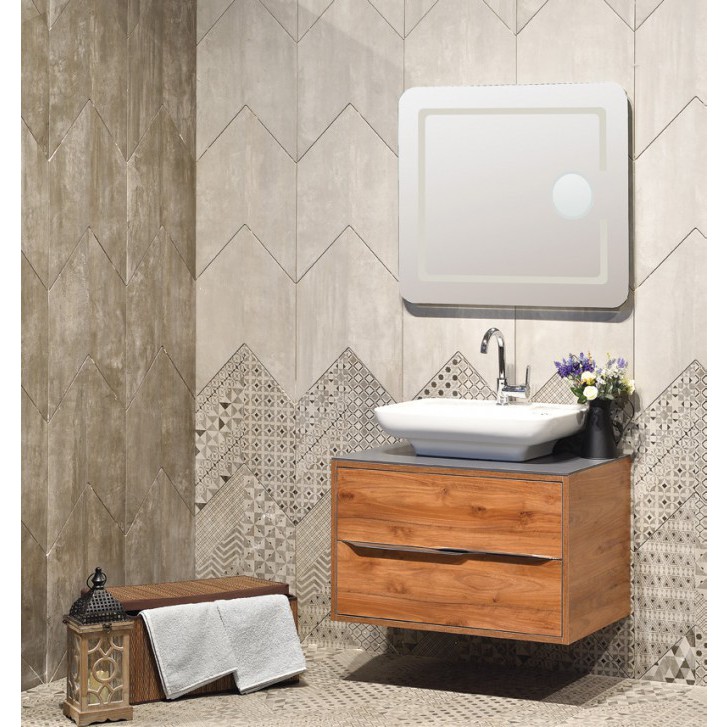 الجسم والأدراج غير لامع ، إضاءة LED ومكبرة ، أدراج ناعمة الإغلاق ، مغسلة سيراميك