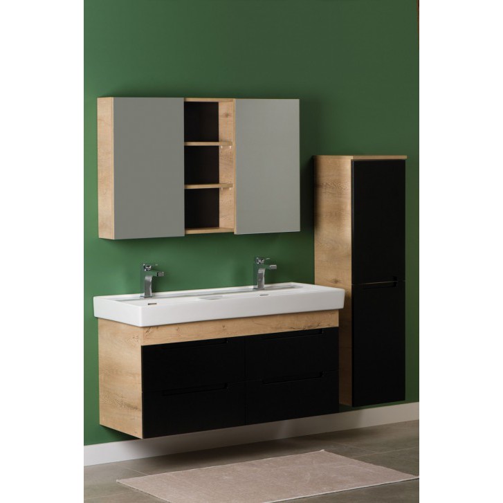Gövde MDF Çekmeceler Mat Siyah Lake Frenli Çekmeceler Çift Hazneli Seramik Lavabo
